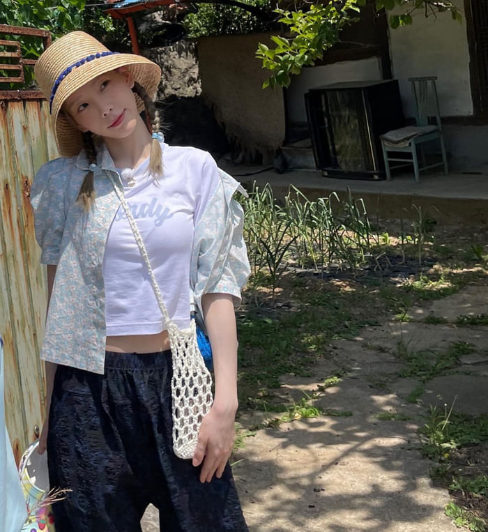 연습하러 가는 패션도 너무 예쁜 태연님! 반팔 패션에는 주로 옷에 포인트가 있거나 컬러로 포인트를 주는 거 같아요!