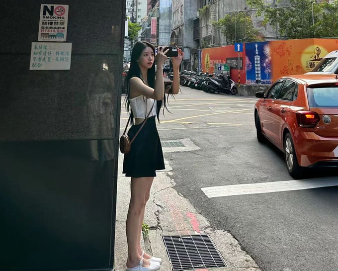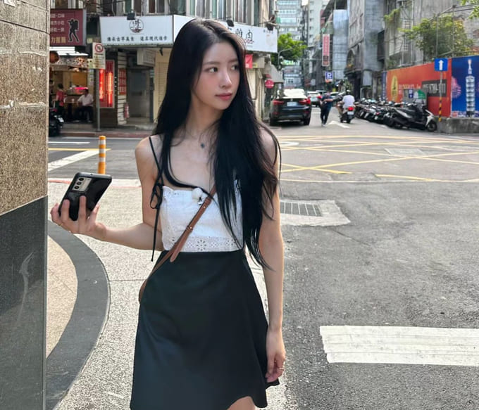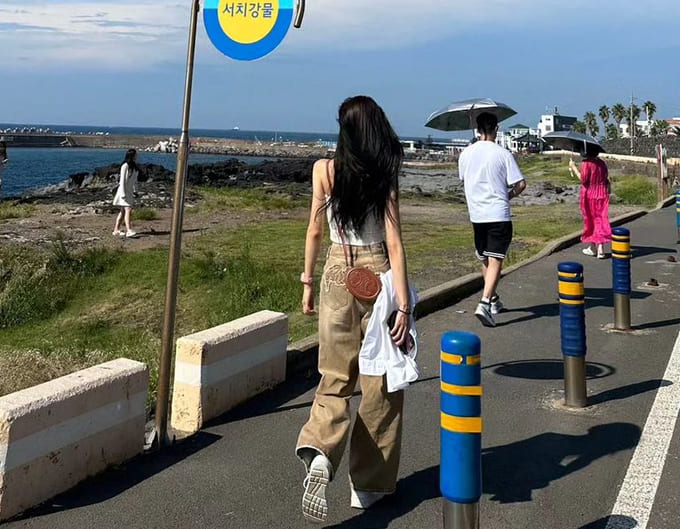 여행지에서 편한 패션도 좋지만 미주 님처럼 꾸꾸꾸한 패션으로 코디하여 여행 기념사진을 남기는 것도 좋죠! 미주 님처럼 상의 컬러를 누드톤의 컬러로 이너 탑에 포인트를 주고 액세서리나 하의에 포인트를 주는 방법이네요!