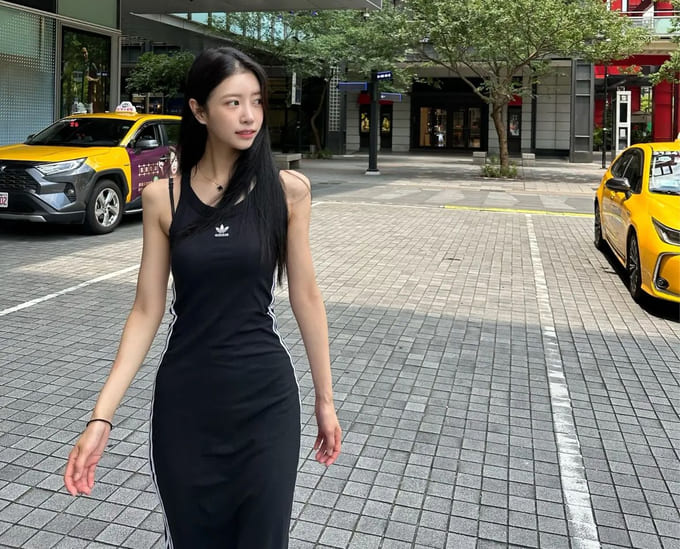 타이트한 원피스 코디는 원피스에 작은 로고나 프린팅 등의 포인트가 있거나 그 외의 아이템으로 포인트를 주기만 해도 예쁘게 입을 수 있어요. 저는 밥을 조금만 먹어도 배에 티가 잘 나서... 정말 입어보고 싶은 룩이에요!