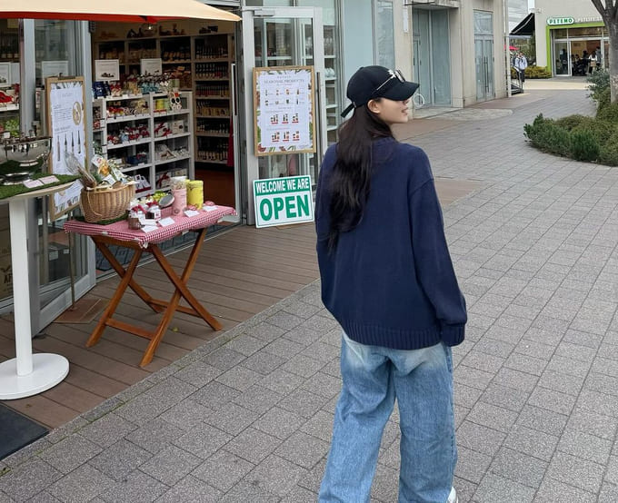 간절기 같은 날씨에 상, 하의 세트 스타일의 옷을 입을 때 이너로 반팔티셔츠나 민소매를 착용한 경우 미주님처럼 다양한 스타일로의 코디와 날씨에 맞게 착용할 수 있어요. 연청 상, 하의 세트에 흰 반팔티셔츠와 운동화에 헤어컬러와 비슷한 블랙 모자로 과하지 않게 포인트를 주었어요!