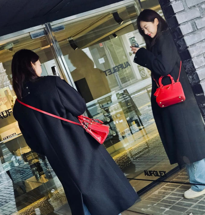 전체적인 코디는 기본 아이템으로 많이 하시고 가방이나 안경, 아우터 등 컬러나 패턴으로 포인트를 주셨어요.