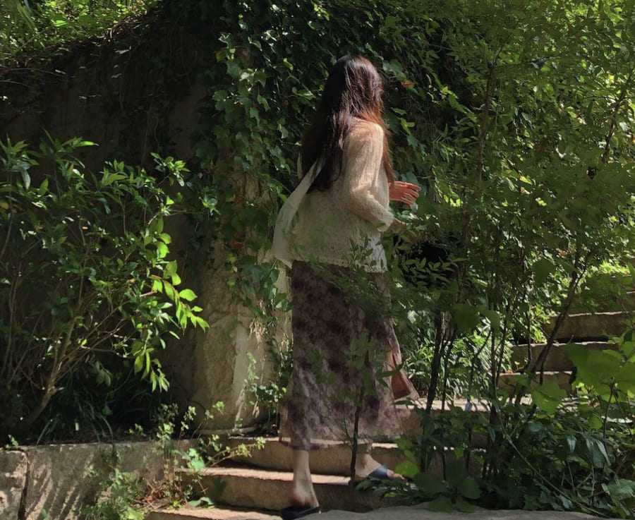 원피스와 시스루 카디건을 활용하여 하늘하늘한 코디.