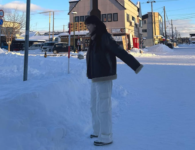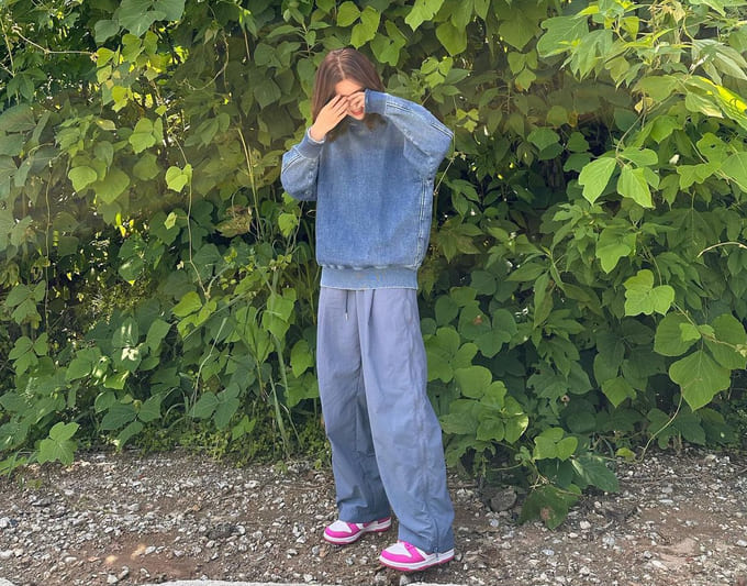 재킷으로 한 코디와 확 다른 느낌으로 오버핏 스타일의 옷으로 코디를 즐겨하시는 거 같아요.