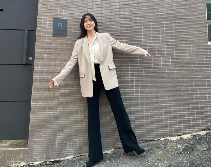 그때나 지금이나 너무 예쁘십니다! 자리에 따라 베이식 핏의 스타일 또는 오버핏의 스타일을 즐겨 입으시는 지은님!