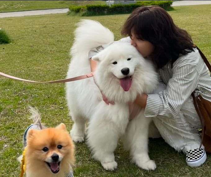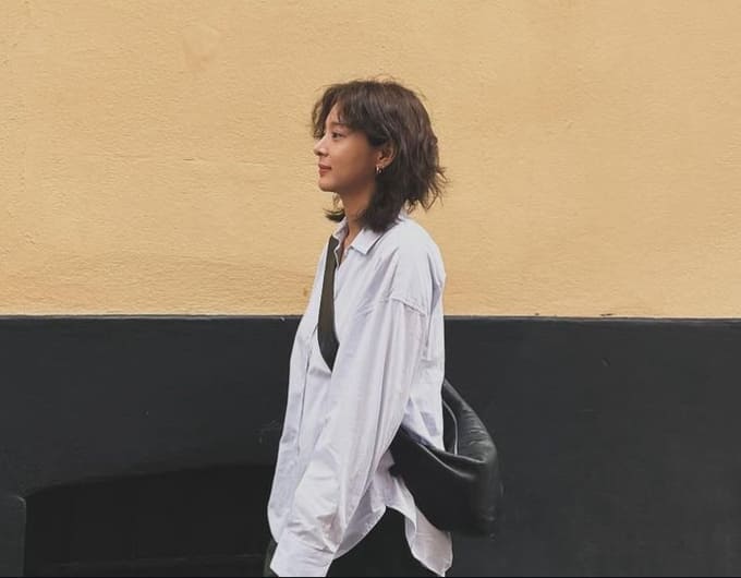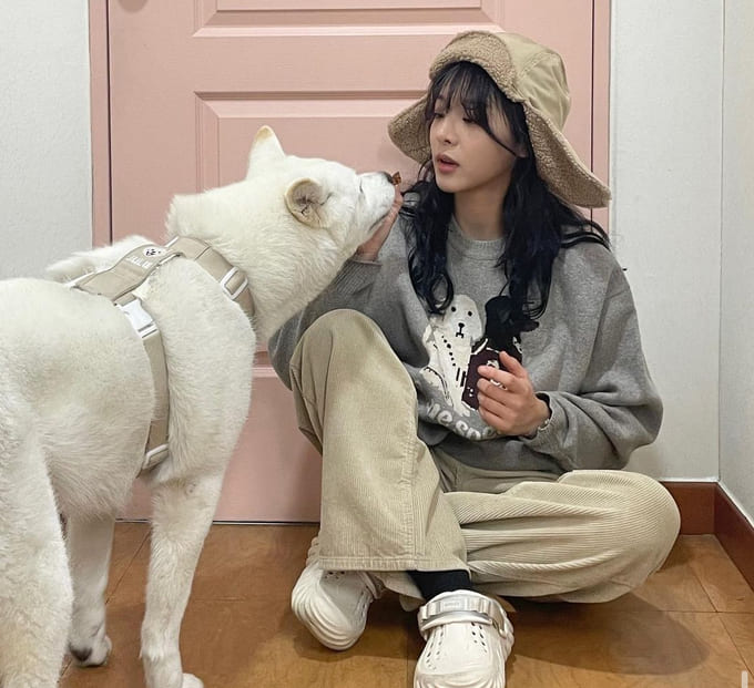 이 정도면 설인아 님의 퍼스널컬러는 강아지 아닌가요? 너드펌 같은 스타일에 편한 셔츠를 매치하여 꾸안꾸 산책룩 완성!