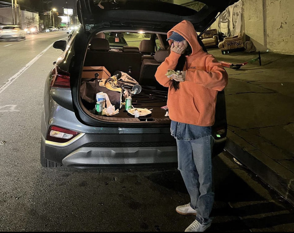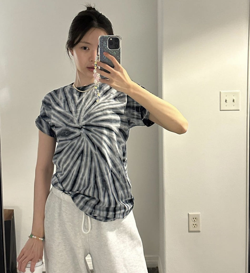타이트한 상의와 접어 입은 청바지의 조합이 힙한 거 같아요!