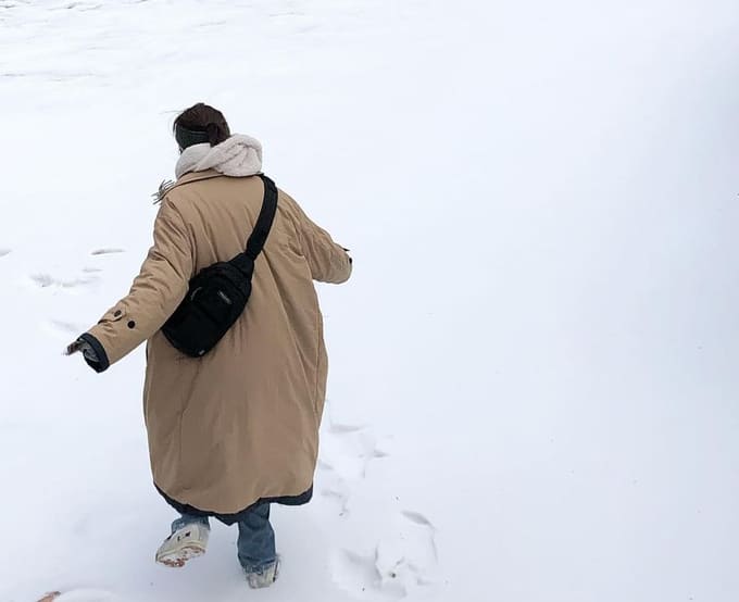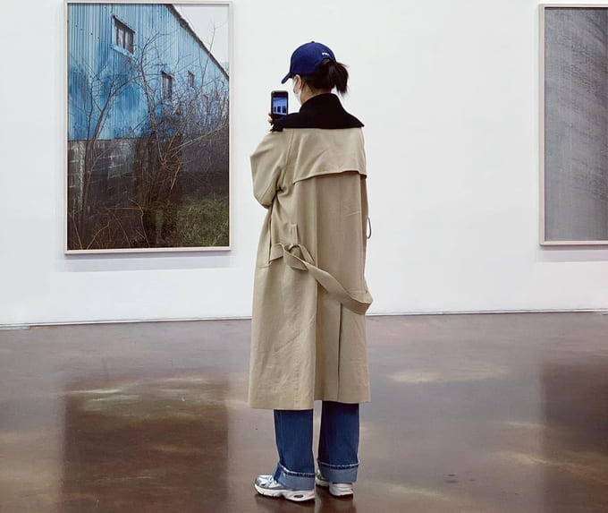 모자와 코트 컬러를 맞추고 어디에나 잘 어울리는 청바지! 가을이나 겨울에 블랙 코트를 많이 볼 수 있는데 은진 님처럼 약간 밝은 컬러의 코트도 생각보다 다양한 옷과 어울리는 거 같아요.