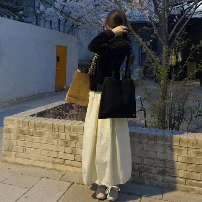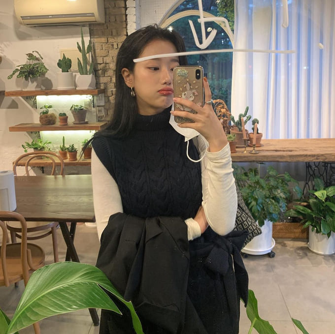 올블랙 코디도 다 가리기보다는 나은 님의 코디처럼 홀터넥으로 살짝 드러내면 답답하지 않은 올블랙 패션을 할 수 있어요! 반대로면 롱스커트면 약간의 트임이 있거나 길이감이 너무 길지 않은 스커트도 좋아요!