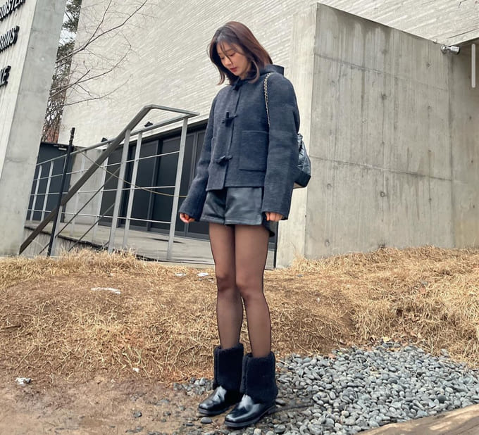청바지에 코트 코디는 성공확률 거의 100%인거같아요! 신발과 코트의 컬러를 맞추고 아이보리컬러의 모자가 포인트가 되는 거 같아요.
