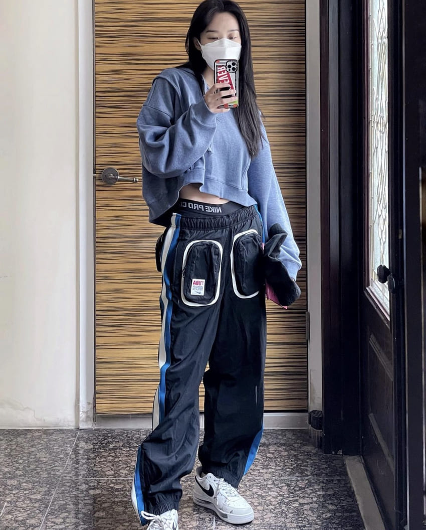 스포티 룩과 캐주얼한 룩을 다양하게 매치한 코디를 많이 볼 수 있었어요.