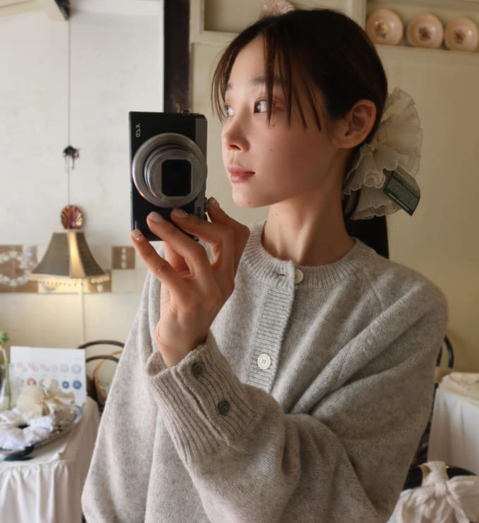 헤어 아이템까지 상의 니트 컬러와 비슷한 컬러로 매치하면 자연스러워요! 각 각 다른 컬러로 매치하면 포인트를 줄 수도 있어요.