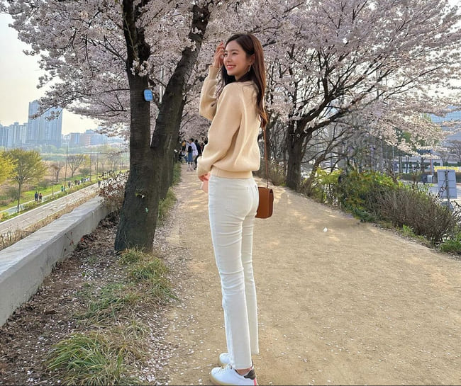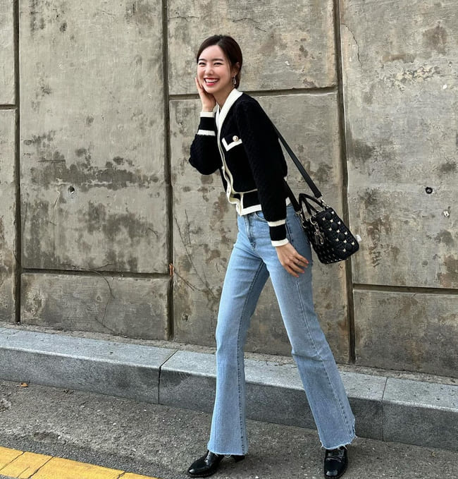 세연 님은 키가 크시서 다리가 기셔서 청바지가 정말 잘 어울리는 거 같아요! 결혼식 하객룩으로도 좋은 코디예요!