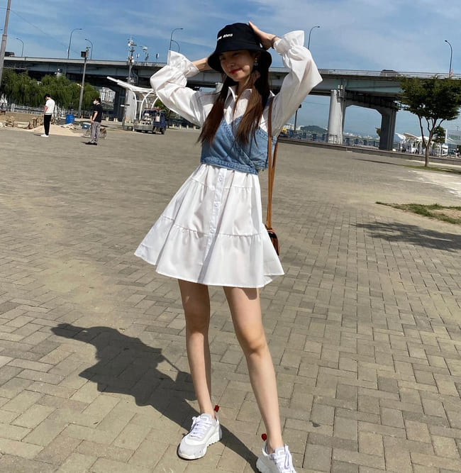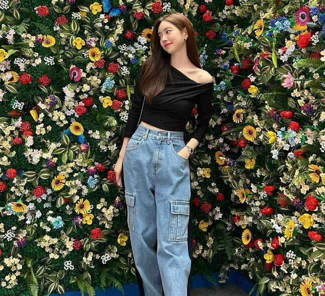 청바지 외에도 치마, 원핏, 반바지 등등 다양한 아이템을 착용하면서 사진마다 다른 무드를 연출하셨어요!