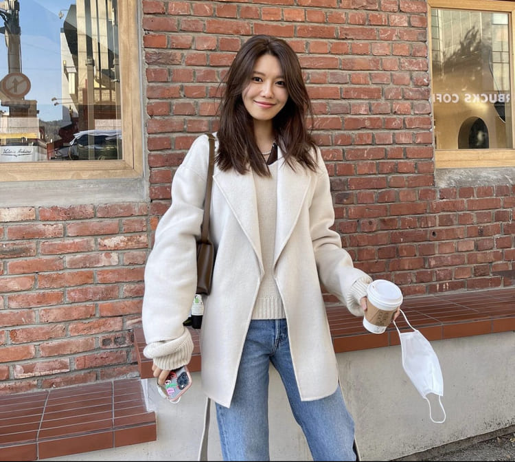 캐주얼하게 코트를 매치한 코디가 키가 크신 수영님에게 정말 잘 어울리는 코디인 거 같아요.