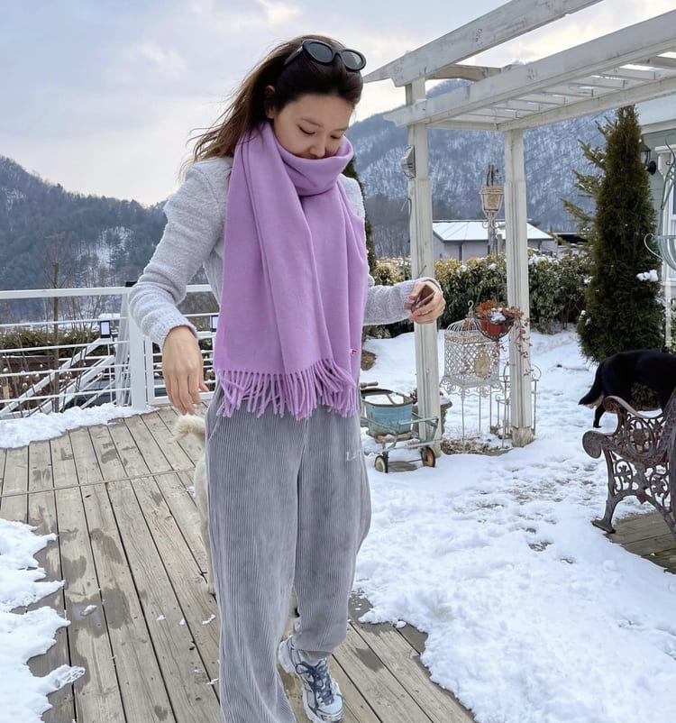 요즘 같은 겨울에 따라 입기 딱 좋은 패션이네요! 목도리에 니트, 조커 팬츠까지.