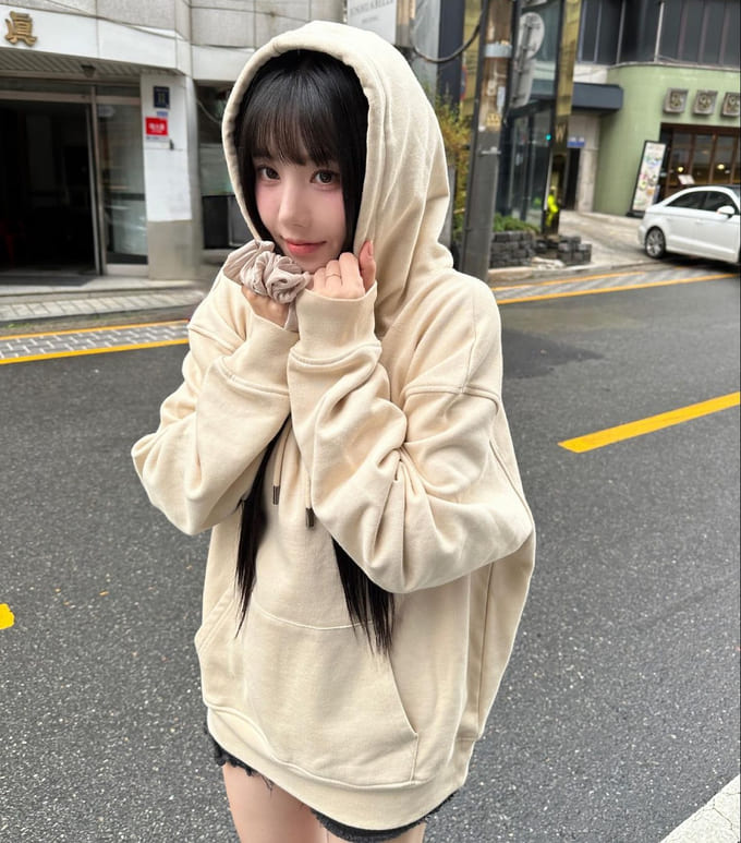 박시한 앙고라 니트에 짧은 스커트를 매치하신 은비 님... 진짜 너무 천사 같은 코디 아닌가요?