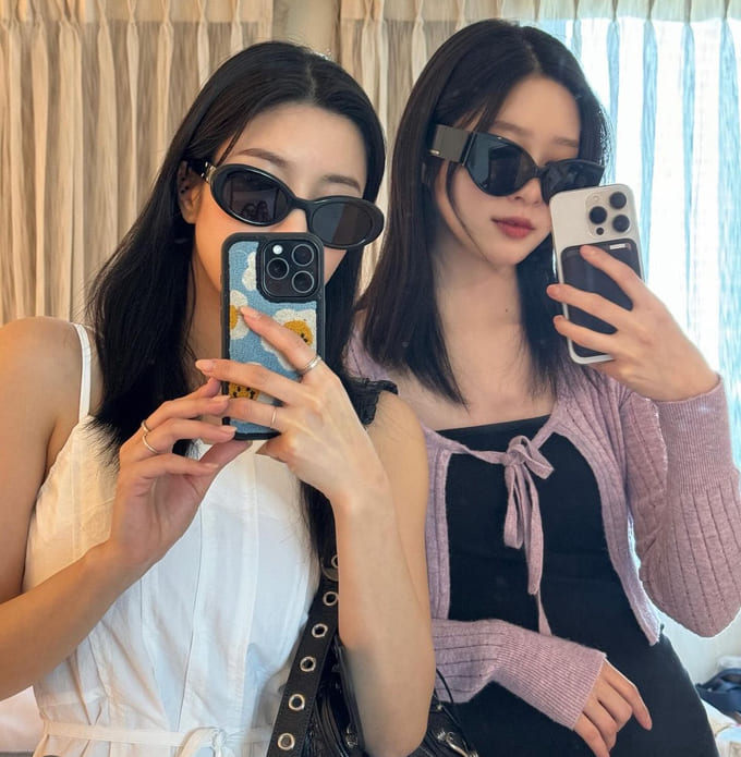 거기에 오버사이즈 선글라스를 착용하시니 얼굴이 작아 보이는 효과까지!