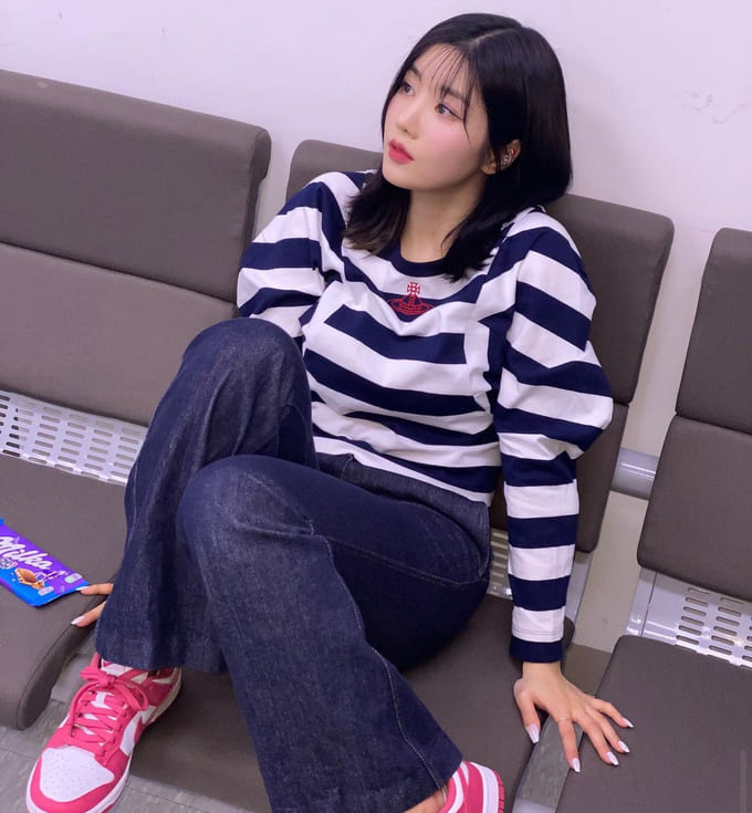 다양한 스타일에 포인틀 아이템까지 잘 사용하시는 권은비 님의 코디를 참고해 보는 건 어떨까요?