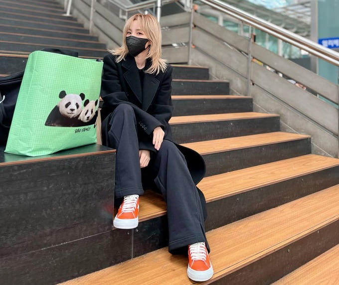 독특한 다라 님만의 사복스타일이 있지만 노멀 한 스타일의 룩도 있다는 거! 블랙 코트에 탈색머리에서 시크함이 느껴져요!