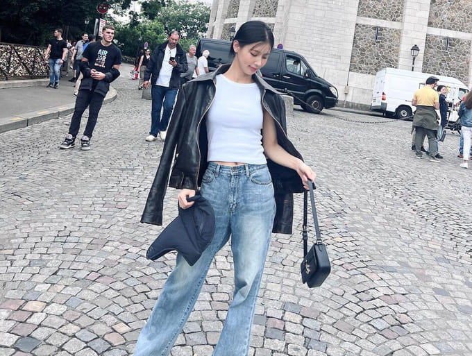 미연 님은 신장이 161cm로 되어있는데 키가 커 보이는 코디를 즐겨하셔서 키가 커 보여요! 크롭 한 상의로 다리가 길어 보이게 하여